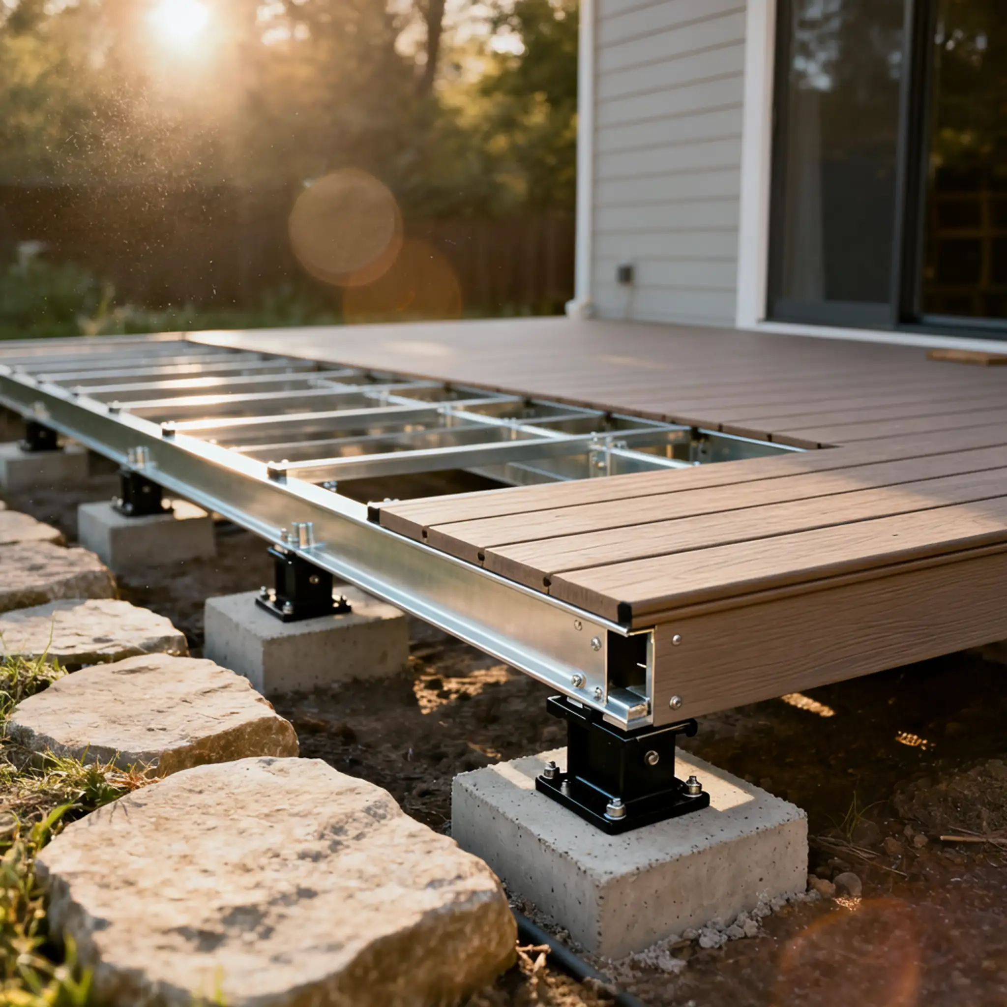The premium aluminum framing system is the ultimate foundation for your deck. It is non-corrosive and moisture-proof, providing maximum stability for high-end decking (TimberTech, Azek, Trex). We deliver precision installation for a beautiful, worry-free deck that lasts a lifetime.